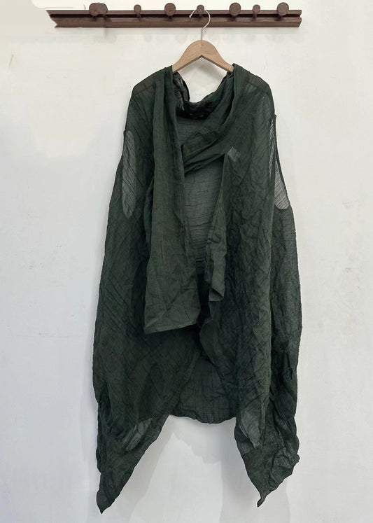 Simple Red Asymmetrical Solid Linen Cardigan Sleeveless MN074