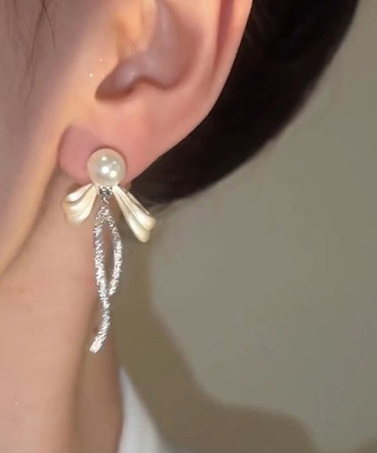 Simple Silk Alloy Butterfly Zircon Pearl Tassel Drop Earrings QQ006