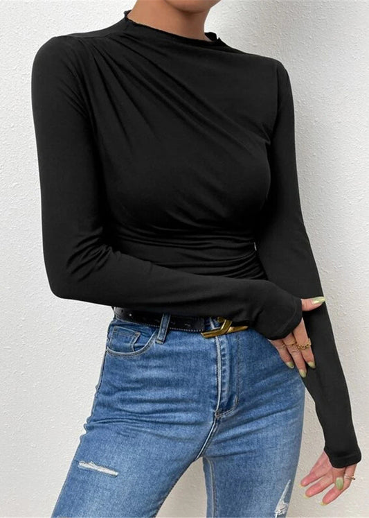 Slim Fit Black Asymmetrical Cold Shoulder Cotton Chest Wrapping Top Sleeveless AB1038