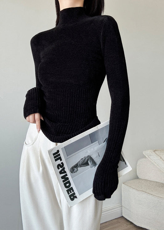 Slim Fit Black Turtleneck Side Open Silk Maxi Dresses Sleeveless YT005