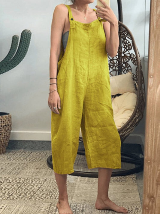 Solid Casual Cotton-Blend Jumpsuit & Romper CM50