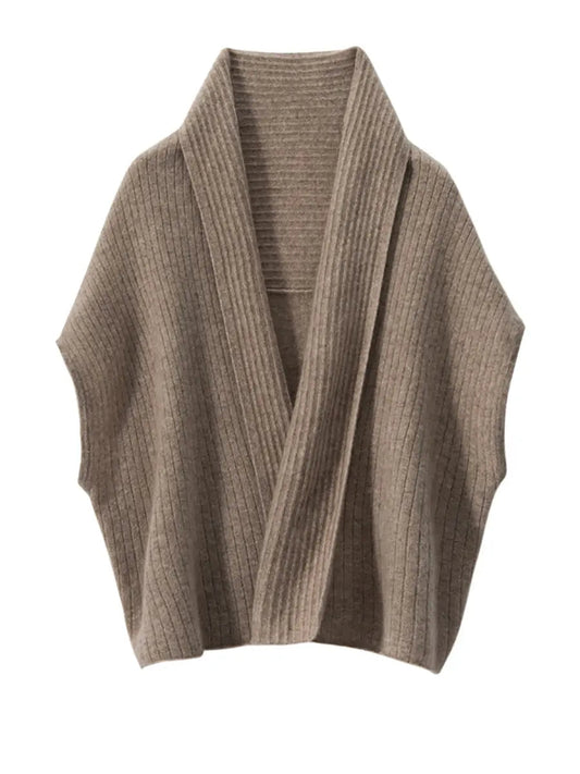 Solid Cashmere Knitted Shawl Cardigan AH276