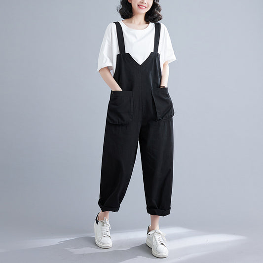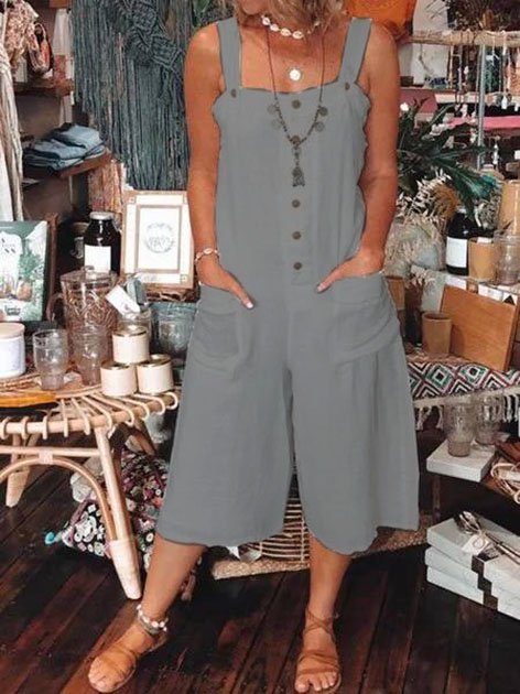 Spaghetti Casual Pockets Plus-size One-Pieces QAJ15