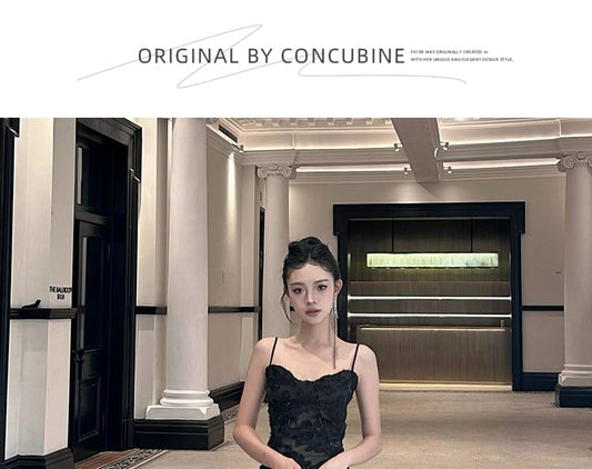 Spaghetti Strap Plain Side-Slit Maxi Corset Dress CG1