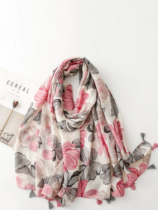 Spring Artsy Flower Print Tassel Shawl Scarf CX017