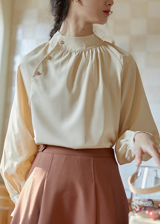 Stand Collar Cashew Flowers Printed Casual Loose Blouse QX68