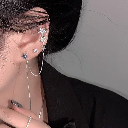 Star Five-Pointed Blue Hoop Sterling Earrings Silver Brief