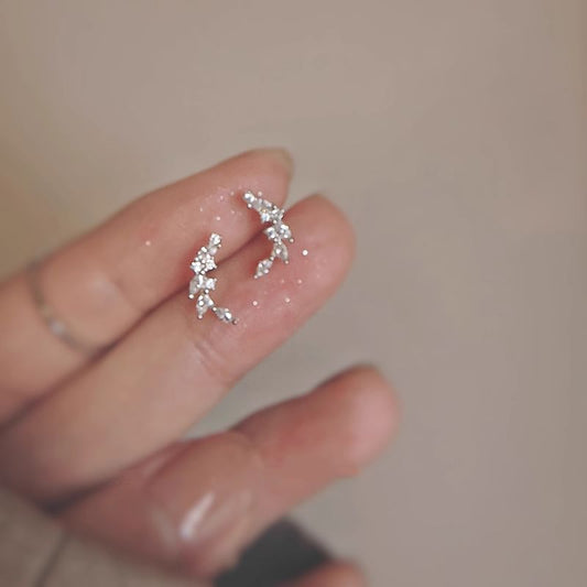 Stud Rhinestone / Cherry Sterling Cuff Silver Ear Earring