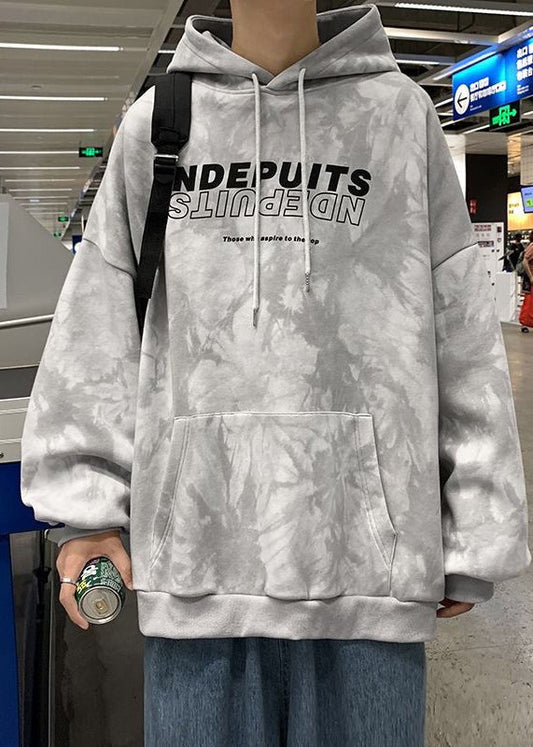 Stylish Black Hooded Tie Dye Cotton Mens Sweatshirts Fall RP057