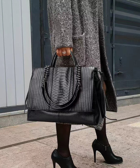 Stylish Black Large Capacity Calf Leather Tote Handbag WI038