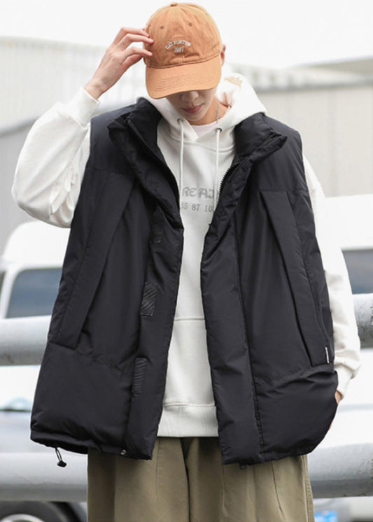 Stylish Black Oversized Drawstring Fine Cotton Filled Men Puffer Vests Winter TK023