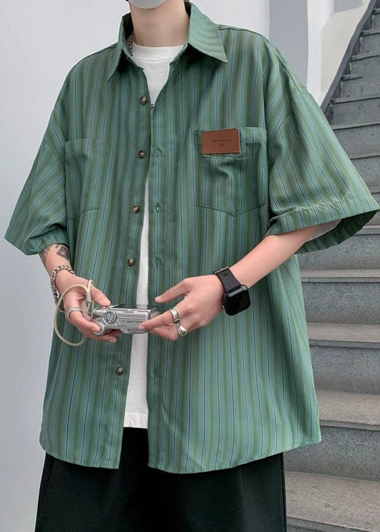 Stylish Cotton Striped Half Oversized Sleeve Apparel Green Men