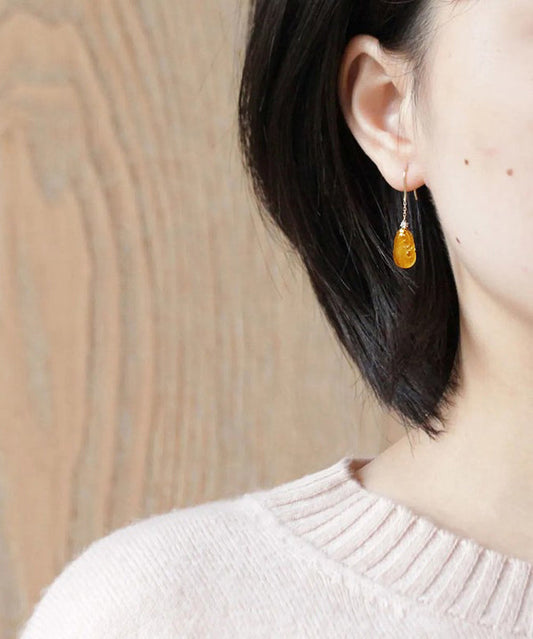 Stylish Orange Sterling Silver Overgild Jade Drop Earrings AC1048