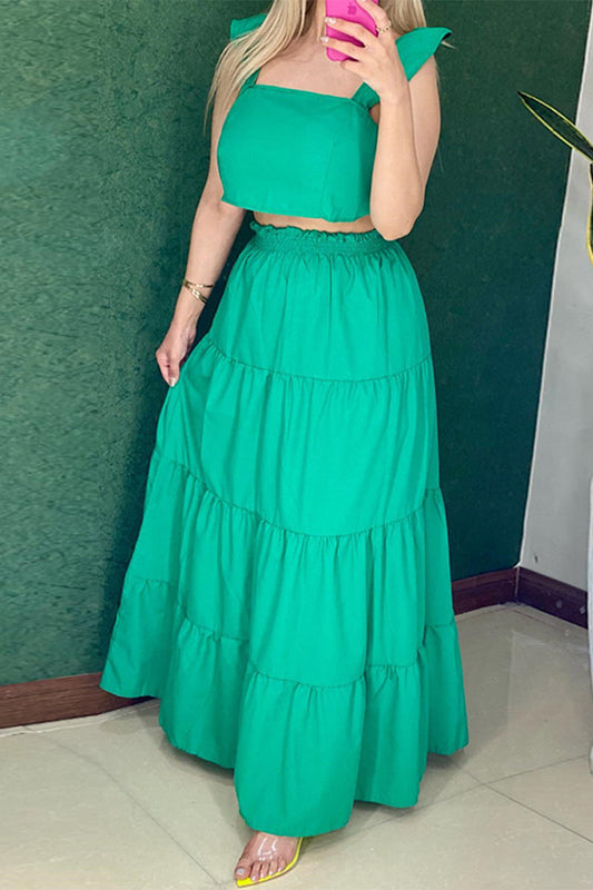 Sweet Solid Flounce Square Collar One Step Skirt Dresses FS1582