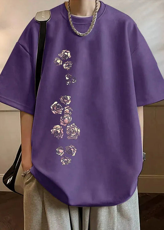 T Cotton Shirts Chic O Summer Print Men Oversized Neck Black