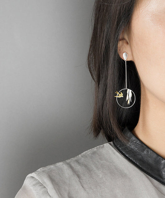 Unique Silk Sterling Silver Little Bird Leaf Drop Earrings QQ009