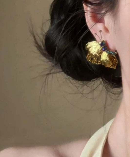 Vintage Gold Sterling Silver Overgild Butterfly Hollow Out Stud Earrings WF003