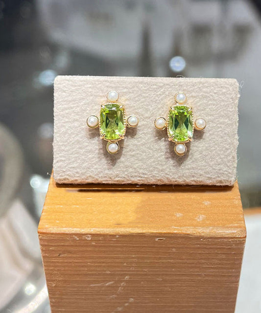 Vintage Gold Sterling Silver Overgild Crystal Pearl Stud Earrings QU040