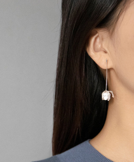 Vogue Flower Earrings White Drop Camellia Pearl Copper Tassel