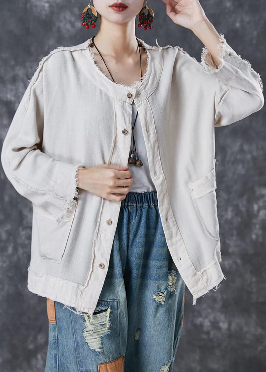 White Pockets Elastic Waist Pants Simple Fall Linen