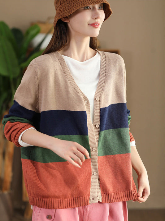 Women Autumn Colorblock V-Neck Knit Sweater AS1012