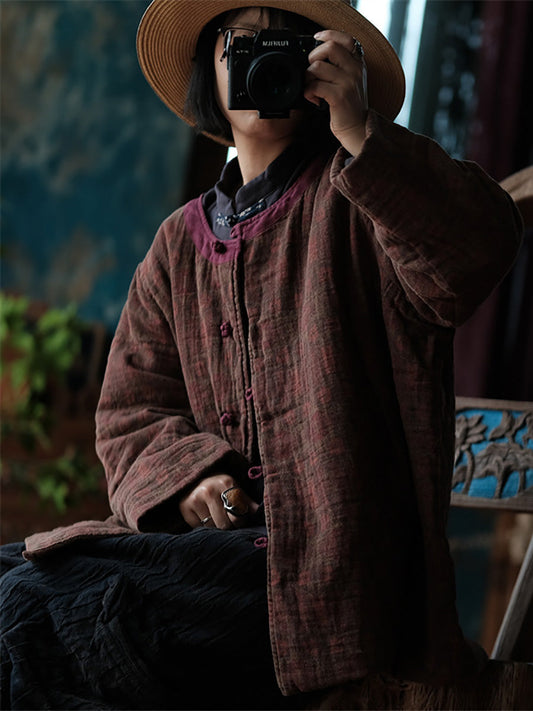 Women Autumn Ethnic 100%Cotton Colorblock Padded Coat AI1063