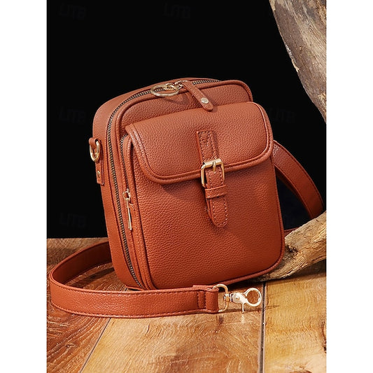 Bag Front Brown with Faux Vintage Leather Women's Crossbody