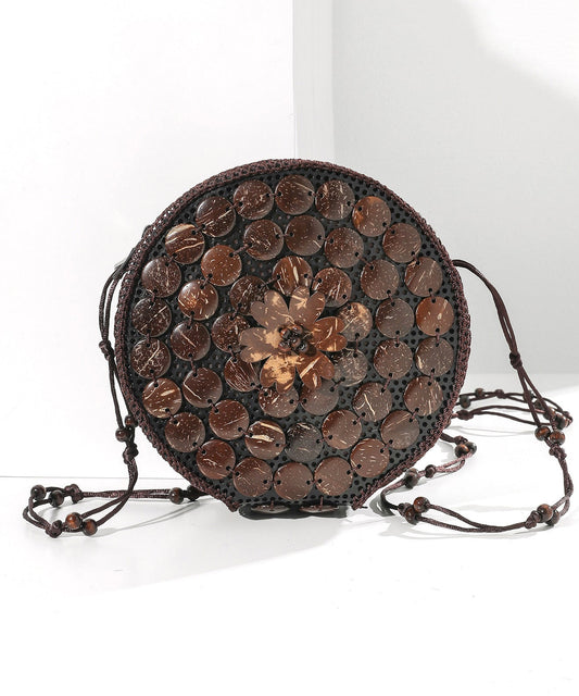 Boho Handmade Wooden Patchwork Circular Messenger Bag HJ1051