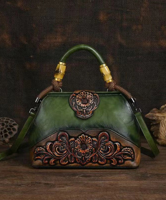 New Green Hand Carved Retro Chinese Style Tote Handbag HJ1007