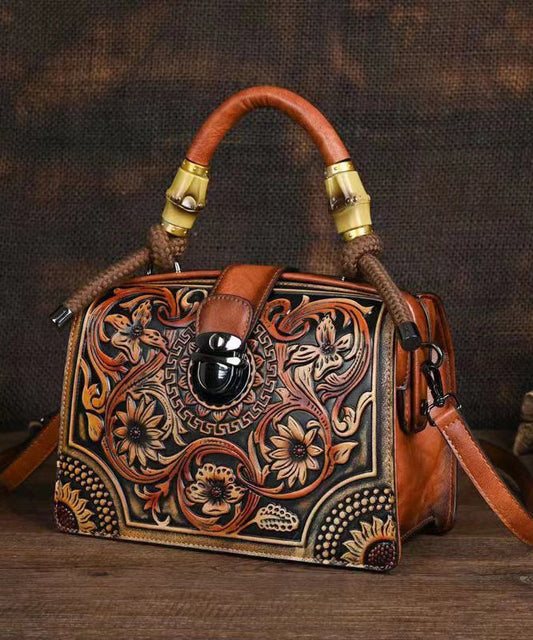 Vintage Cowhide Handmade Embossing Tote Handbag HJ1031