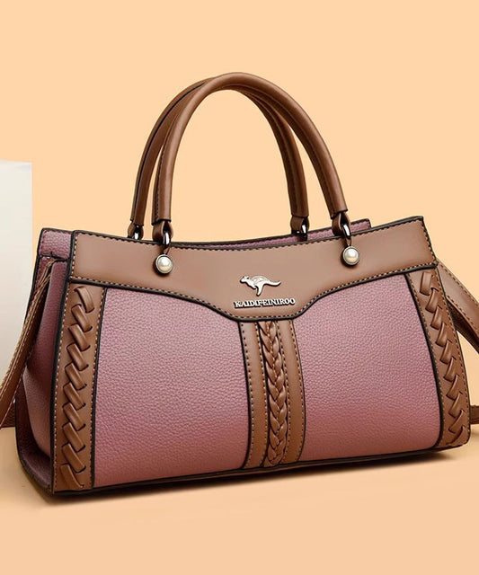 Faux Durable Tote Solid Colorblock Handbag Leather Classy