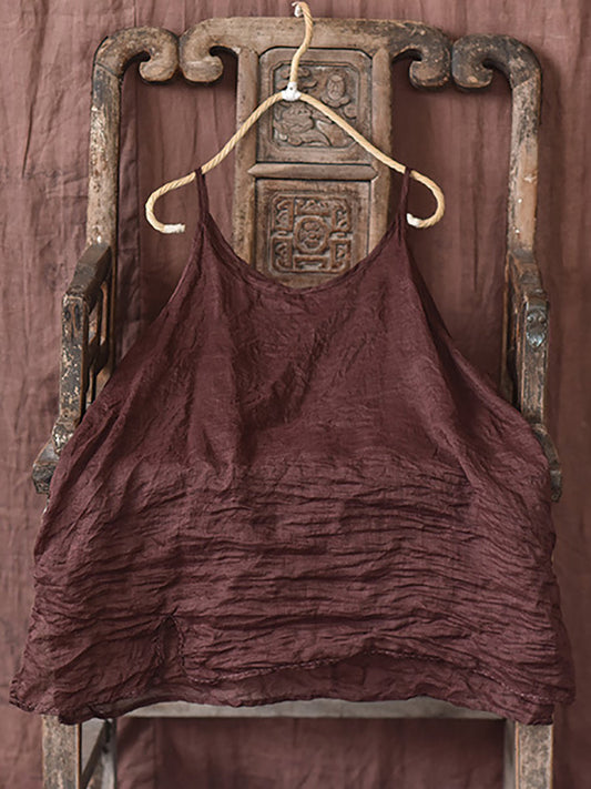 Women Casual Solid Split Hem Stitching Loose Ramie Vest AH517