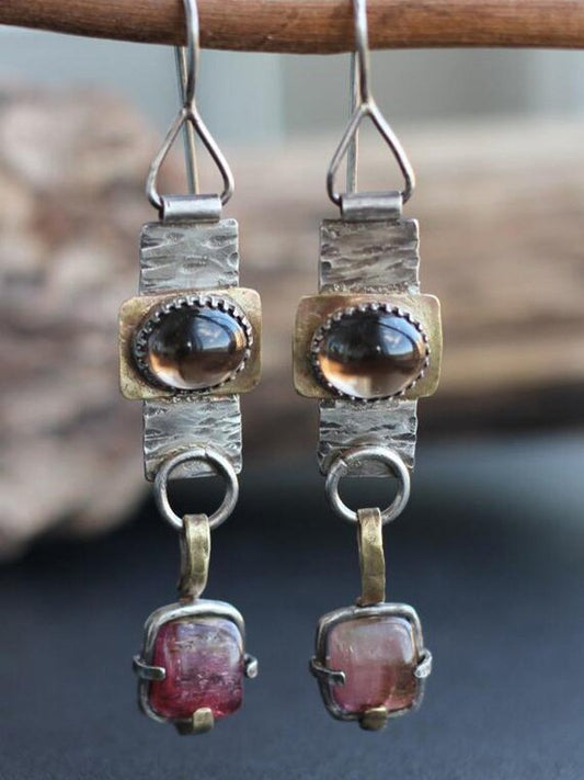 Ethnic Natural Crystal Geometric Pattern Distressed Dangle Earrings Vintage Jewelry AD951