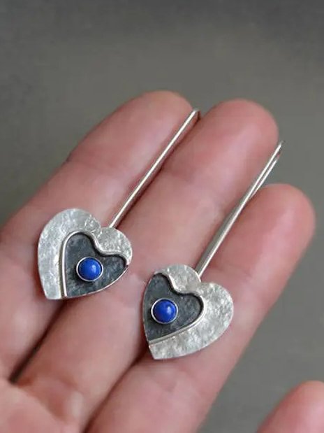 Ethnic Style Natural Gemstone Heart Pattern Earrings Vintage Jewelry QAG35