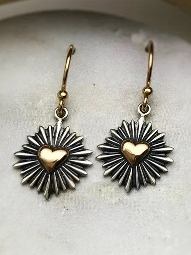 Retro Contrast Color Heart Pendant Earrings Ethnic Style Old Jewelry QAG37
