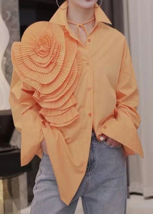Floral Blue Peter Pan Collar Button Cotton Shirts Long Sleeve AH539