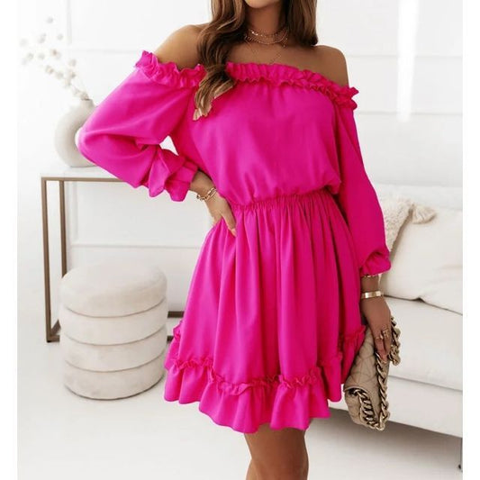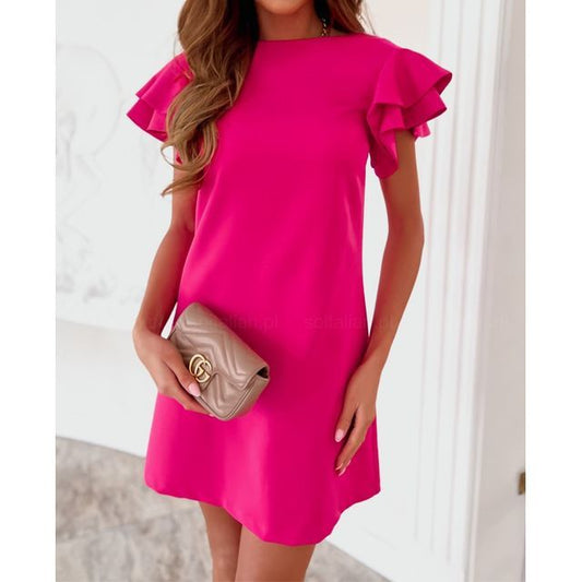 Ruffle Trim Plain Mini A-Line Dress YS10019