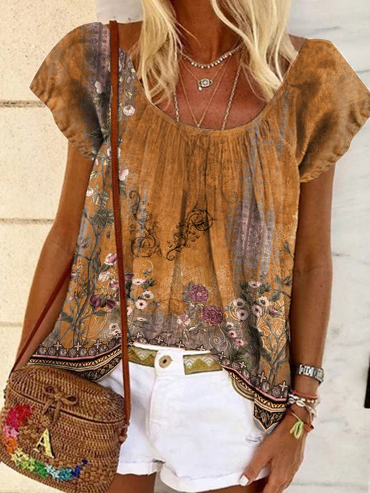 Crew Neck Loose Ethnic Women T-Shirt AC1005