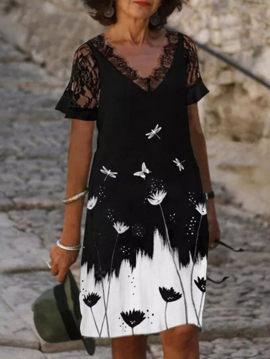 Short Sleeve V Neck Plus Size Printed Dress NNq58