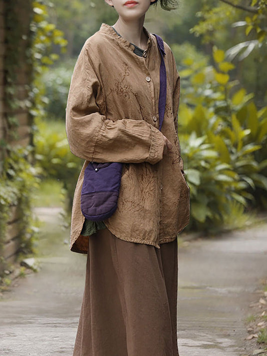Women Autumn Vintage Button Raw-edge Linen Blouse AI1044