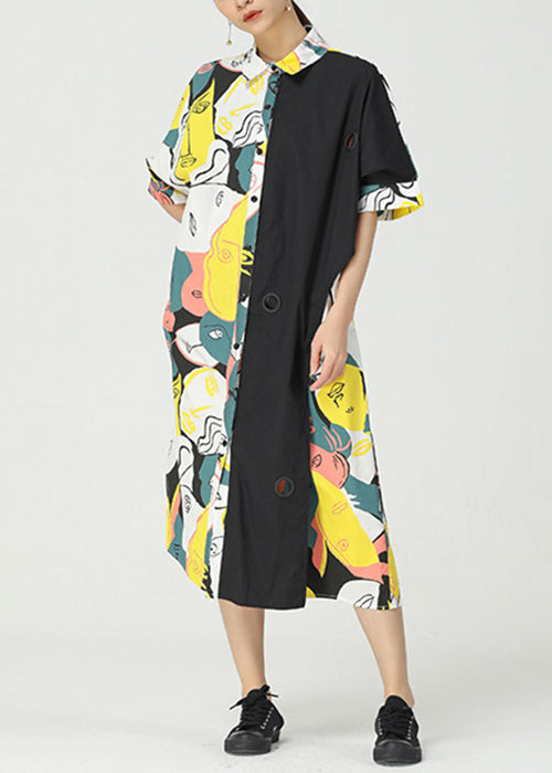 White Button Patchwork Cotton Blouses Dresses Peter Pan Collar Summer AA1034