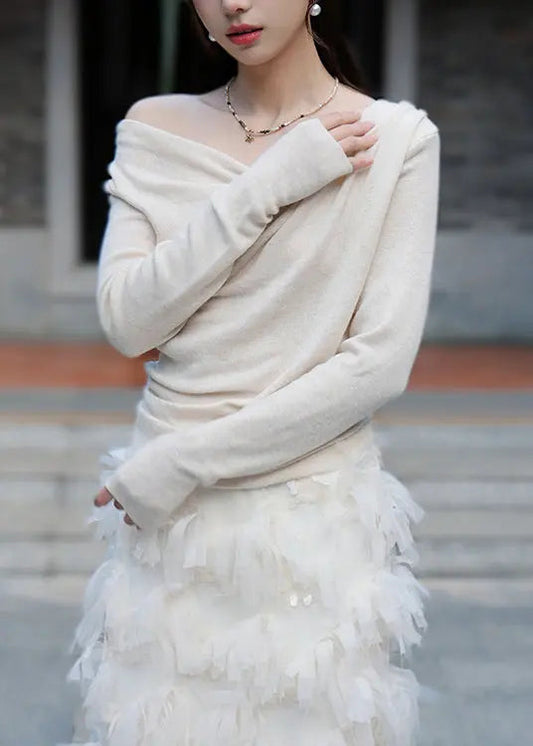 Women Apricot Solid Asymmetrical Cotton Knit Blouse Spring CG1054