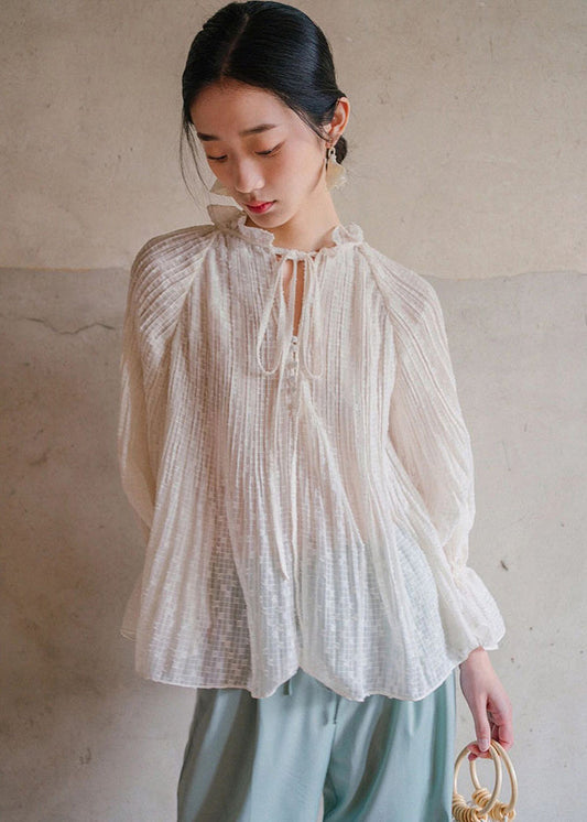 Bohemian White Ruffled Lace Up Cotton Blouses Lantern Sleeve LY7740