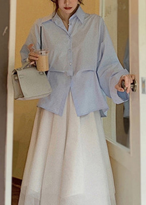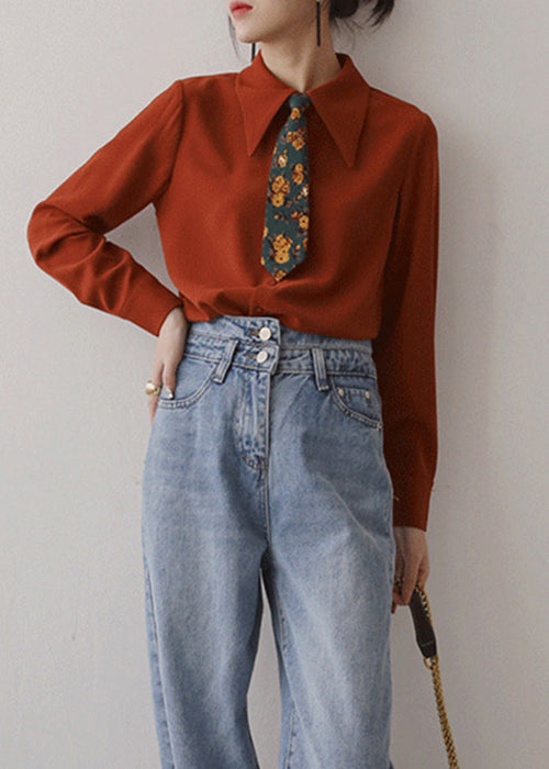 Casual Solid Buckle Shirt Collar Blouses CE0125