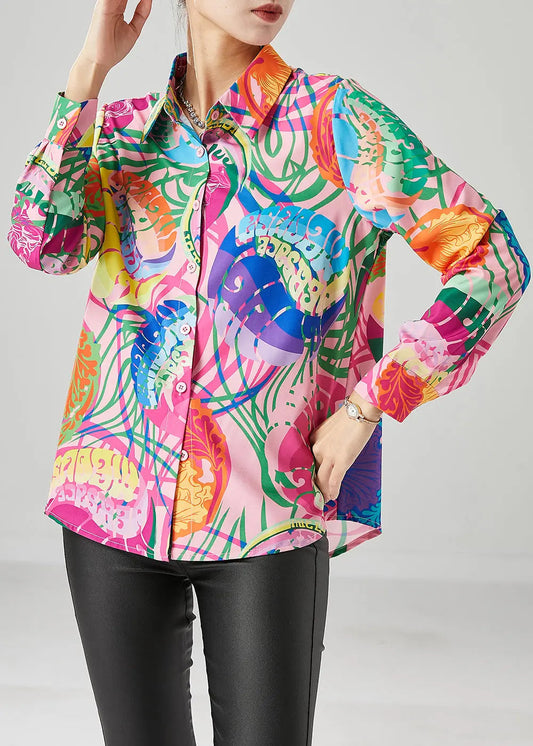 Street Print Patchwork Buttons Mandarin Collar Blouses FY7426