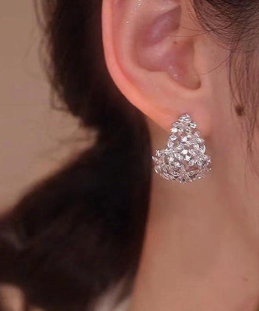 Boho Silk Sterling Silver Zircon Hollowed Out Hoop Earrings II026