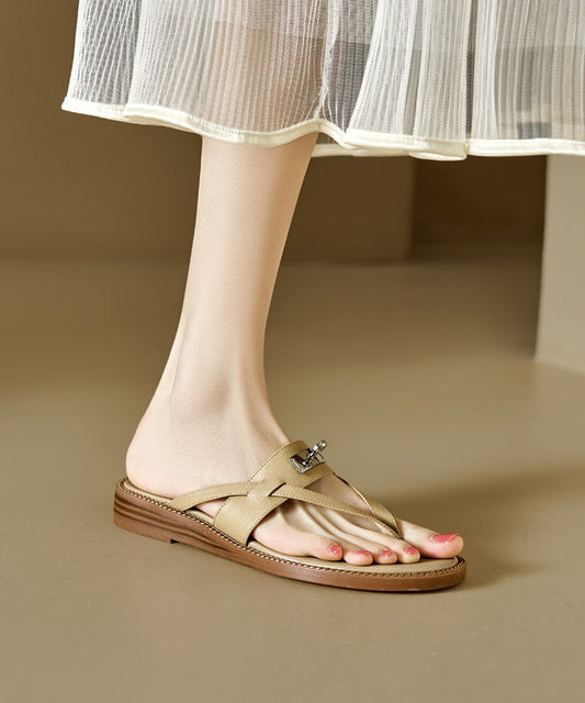 Boho Splicing Flip Flops Slide Sandals Brown Faux Leather AA023