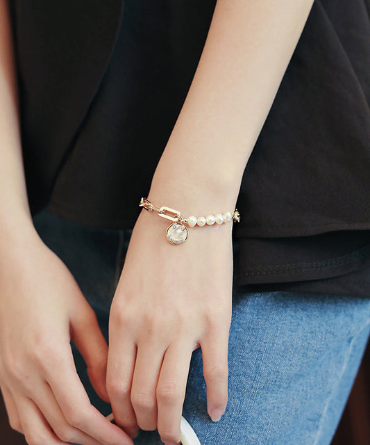 Boho Sterling Silver Alloy Zircon Pearl Smiling Face Charm Bracelet QQ051