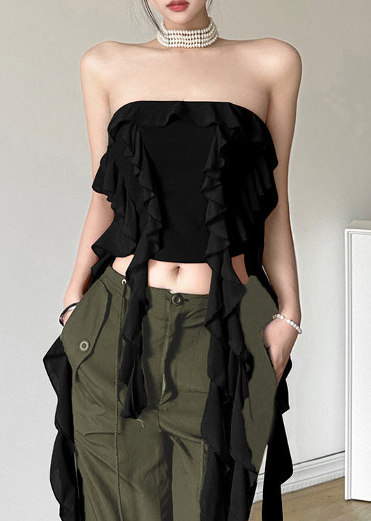 Boho Red Backless Ruffled Solid Cotton Tank Sleeveless KK078