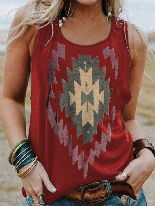 Vintage Sleeveless Boho Geometric Printed Crew Neck Plus Size Casual Vest Tops AT100166